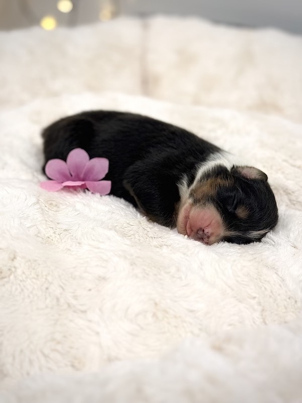 La sua genealogia parla da sé: il padre è Swen, un magnifico maschio Red Merle con un carattere eccellente, la madre Cheri è un’elegante femmina Black Tricolor dal grande fascino. Entrambi i genitori sono stati sottoposti a controlli completi, risultati esenti da malattie genetiche e da displasia dell’anca e del gomito, e si distinguono per la loro indole equilibrata e amichevole.