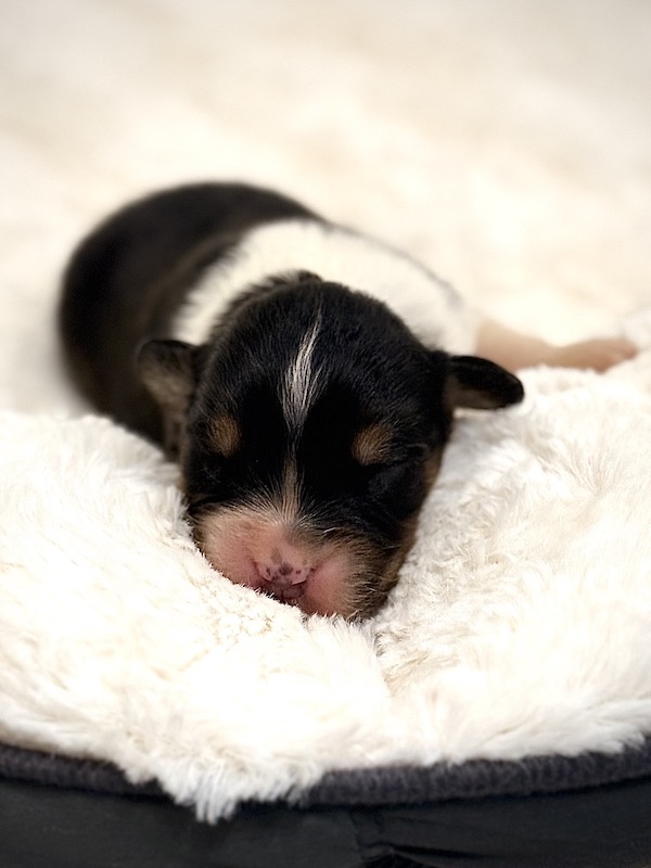 Una bellezza classica – nel suo elegante mantello Black Tricolor e con Natural Bobtail (NBT) incarna alla perfezione l’eleganza e la forza della razza.