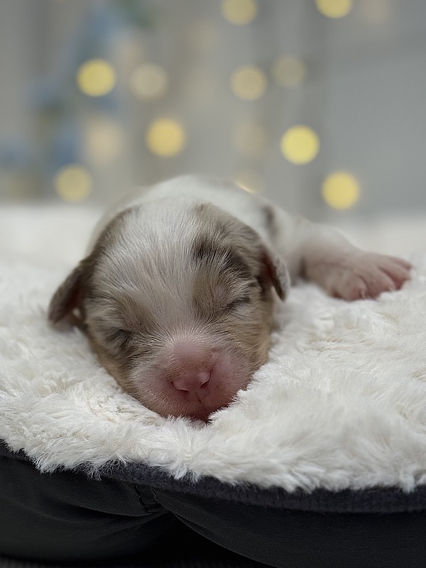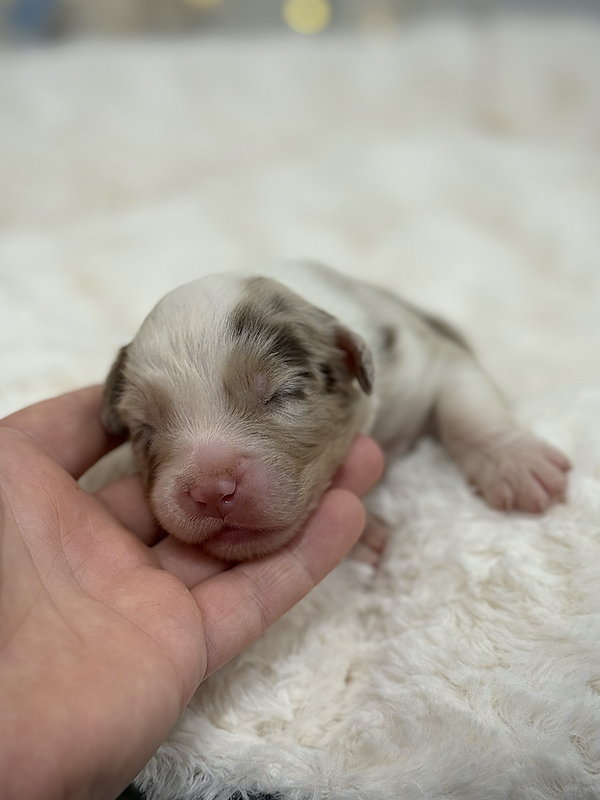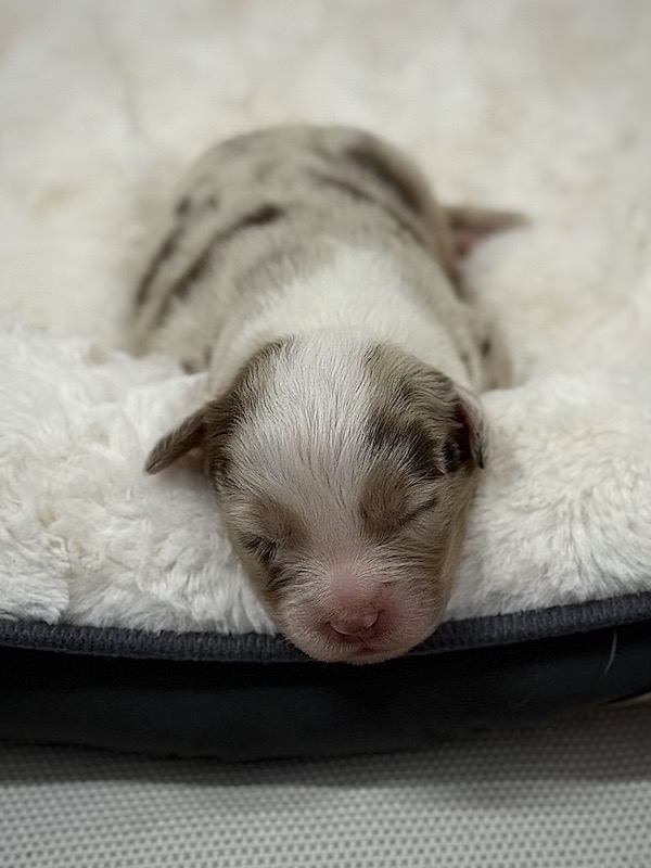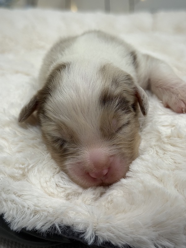 Si tratta di un cucciolo maschio di Australian Shepherd nel bellissimo colore Red Merle con coda. Sarà pronto a trasferirsi a fine novembre.