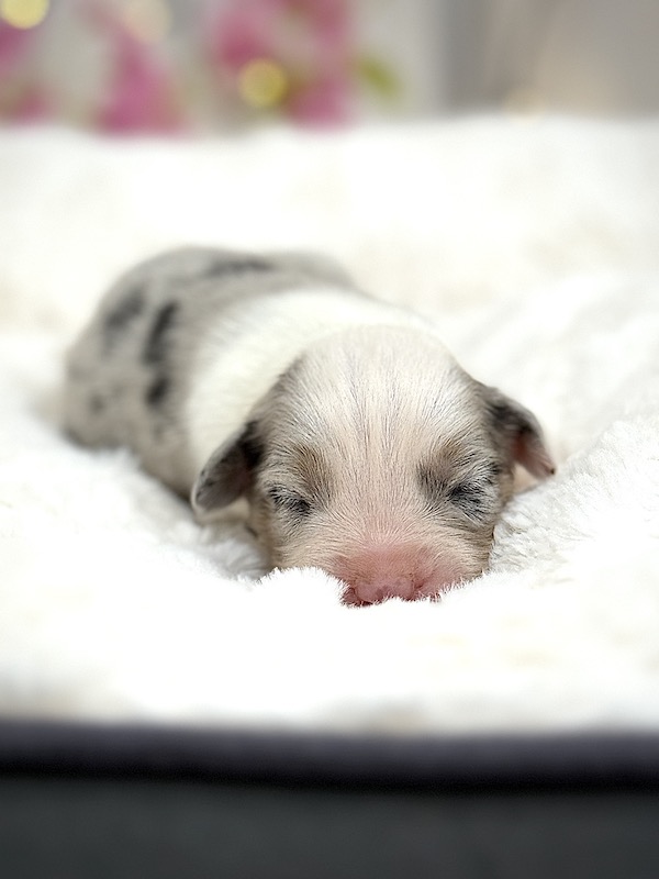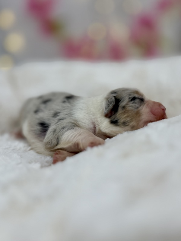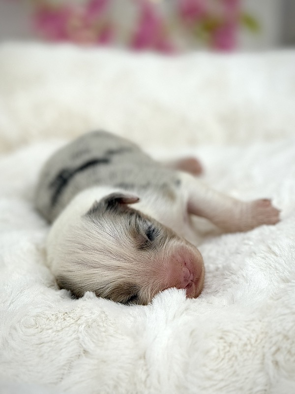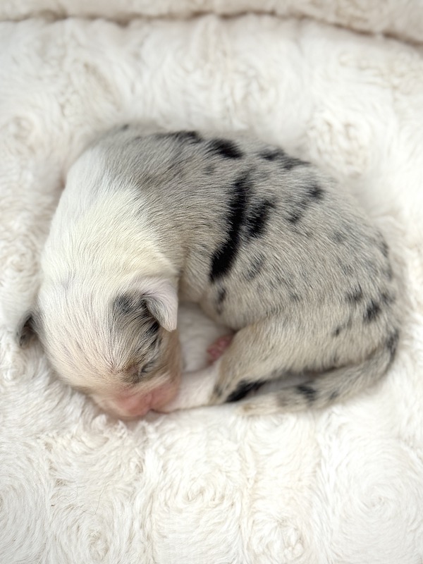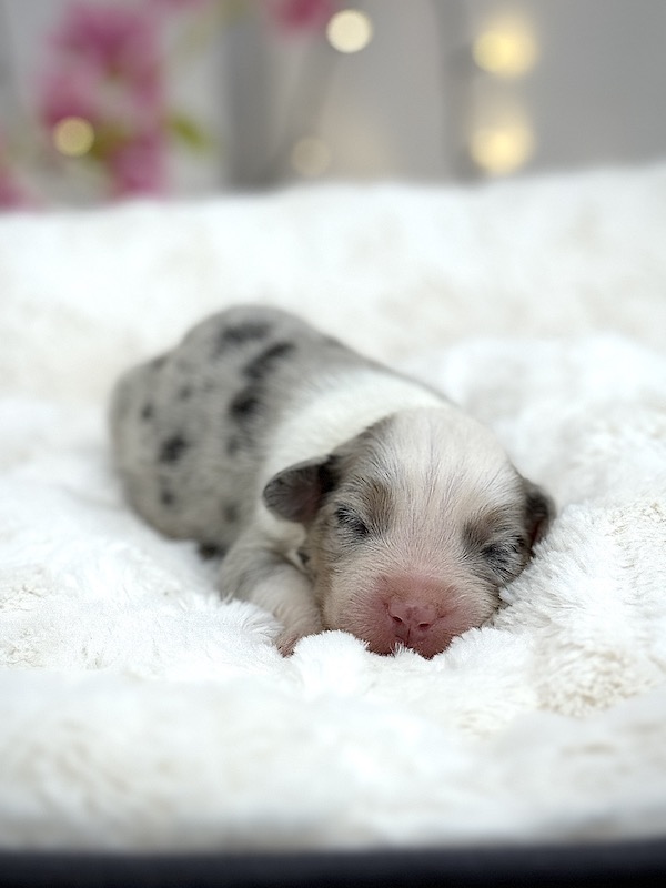 Una piccola signorina nel meraviglioso mantello Blue Merle – elegante, luminosa e con tutto ciò che rende unico un Australian Shepherd.