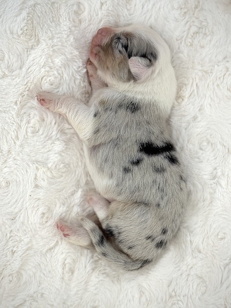 Si tratta di una cucciola femmina di Australian Shepherd nel bellissimo colore Blue Merle con coda. Sarà pronta a trasferirsi a fine novembre.