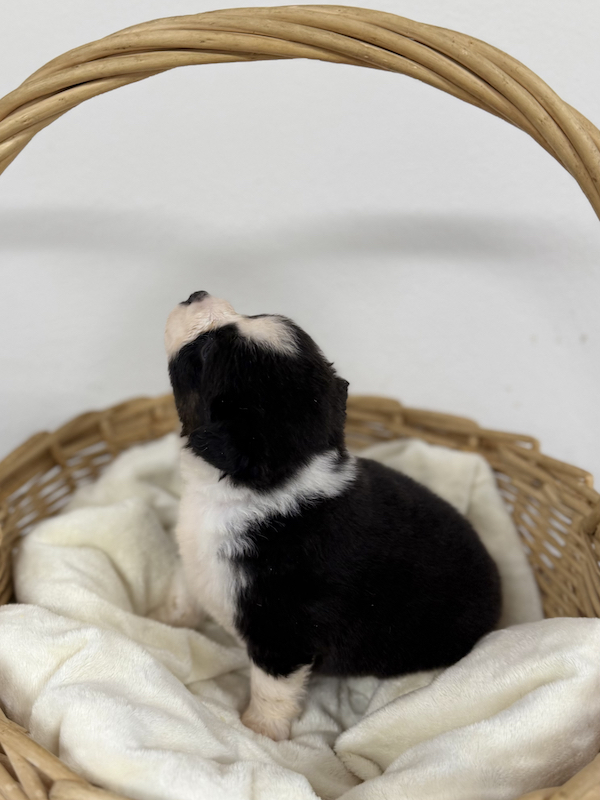 I nostri cuccioli provengono da un accoppiamento pianificato con cura, con particolare attenzione alla salute, al tipo e al carattere. La madre, “Ghost”, un’elegante femmina black tricolor con occhi color ghiaccio, mostra un temperamento equilibrato e amichevole. Il padre, “Cosmo”, il nostro campione blue merle pluripremiato, colpisce per la sua struttura armoniosa, il portamento e la sua natura gentile.